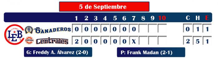 Las dos anotaciones que definieron el choque llegaron tan temprano como en el primer inning, cuando después de dos outs el abridor Frank Madan regaló un boleto y permitió tres sencillos consecutivos, entre ellos dos remolcadores de Yuniel Ibáñez (3-2) y Yeniet Pérez (3-1), el de este último el número mil de su carrera deportiva.