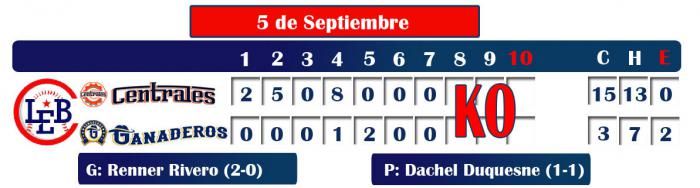 La derrota fue a la cuenta de Dachel Duquesne, vapuleado hace 15 días atrás en una apertura de 1.2 entradas donde soportó siete anotaciones limpias. Los relevistas Ariel Zerquera y Roberto Hernández aceptaron cinco anotaciones entre ambos, cuatro de ellas sucias.