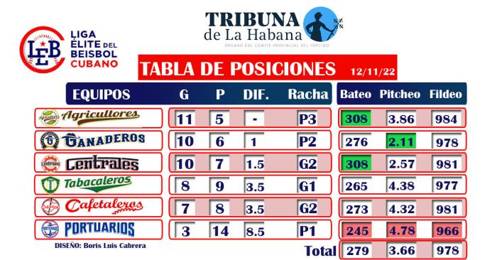 El equipo Centrales aprovechó el tercer resbalón consecutivo de los líderes Agricultores para estrujar la tabla de posiciones de la primera Liga Élite del Béisbol Cubano, al sacudir dos veces a Ganaderos en el 5 de Septiembre y acercarse a solo media rayita de la segunda plaza.
