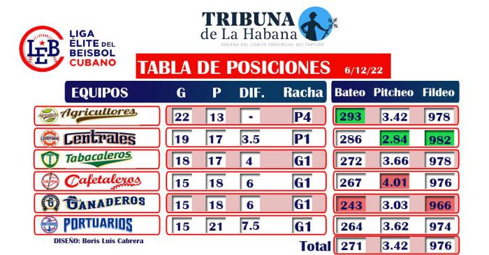 Cuando el calendario clasificatorio de la primera Liga Élite del Béisbol Cubano está entrando en su último tercio de competencia, los líderes Agricultores perdieron este martes su cuarta cosecha consecutiva, en una jornada donde solo se jugaron dos partidos.