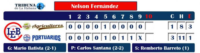 Por los vegueros Juan Carlos Arencibia se fue de 2-2 con un tubey incluido y Yasmani Viera pegó dos sencillos en cuatro visitas al plato.