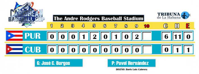 El equipo Cuba que participa en la IV Copa del Caribe con cita en Nassau, Bahamas, cayó esta noche de martes ante la escuadra de Puerto Rico con pizarra final de 6-0, en un desafío donde los nuestros apenas pudieron conectar un imparable en las nueve entradas que duró el juego.