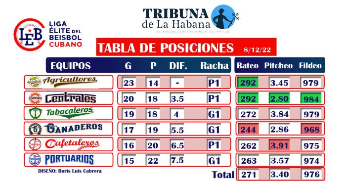 En el bombardeo, Osvaldo Vázquez con tres indiscutibles, Yordanis Samón con sencillo y doblete, y Daviel Gómez con par de imparables, se anotaron dos remolques cada uno.