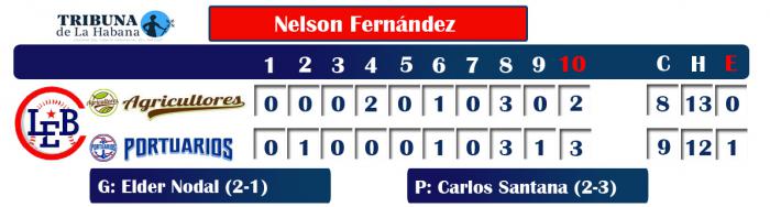Elder Nodal sacó un out en el décimo cuando el rancho estaba en llamas y se llevó el triunfo, mientras Carlos Santana se fue derrotado al aceptar cuatro rayitas (dos limpias) en 1,2 entradas de labor.