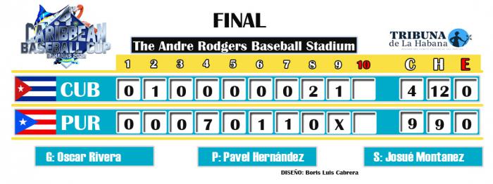 El equipo Cuba se tuvo que conformar con la medalla de plata en la IV Copa del Caribe de béisbol de Nassau, Bahamas, al caer derrotado este domingo ante su similar de Puerto Rico en la gran final, con marcador final de 9-4.
