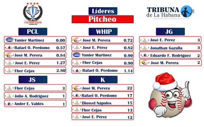 Por último, no se puede dejar de mencionar al jugador de cuadro Ernesto Oses, el jardinero Lesdián Coello, y al caballo de batalla de los Constructores José Miguel Perera, líder en ponches (22) y tercero en efectividad (0.84 PCL).