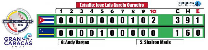 Los Agricultores de Cuba derrotaron 3-1 en diez capítulos a los Gatos Salvajes de Curazao, en el juego inaugural de la 65 edición de la Serie del Caribe Gran Caracas 2023, en duelo efectuado en el estadio José Luis Garcia Carneiro de La Guaira.