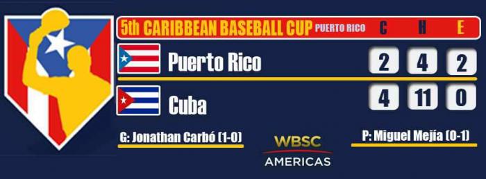 Cuba concluyó invicta la fase clasificatoria de la Copa del Caribe de béisbol con cita en Puerto Rico, al vencer hoy 4-2 a los anfitriones, éxito que le garantizó su pase a la discusión de la medalla de oro del torneo.