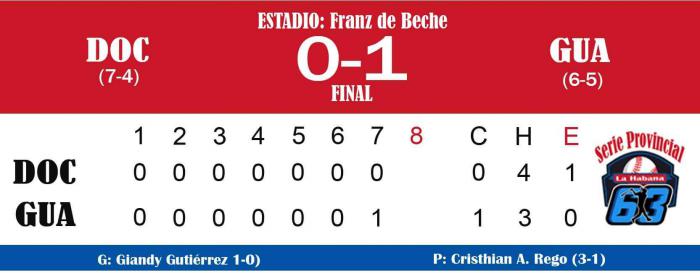 En el mismo estadio Franz de Beche los anfitriones de Guanabacoa dejaron tendidos en el campo a Diez de Octubre con marcador de 1-0 y lo alejaron a dos rayitas de la cima.