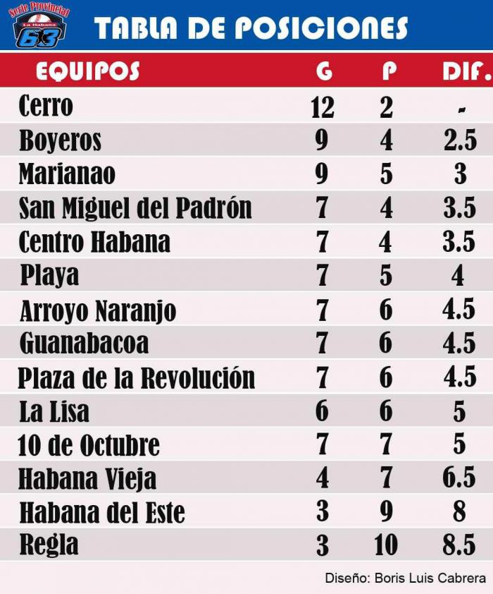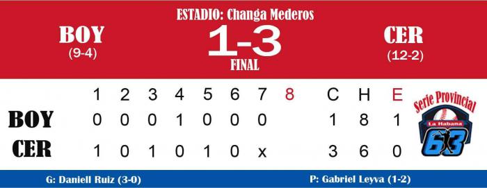 El equipo del Cerro venció este miércoles a su similar de Boyeros y concluyó de líder en la fase clasificatoria de la 63 Serie Provincial de Béisbol de La Habana.