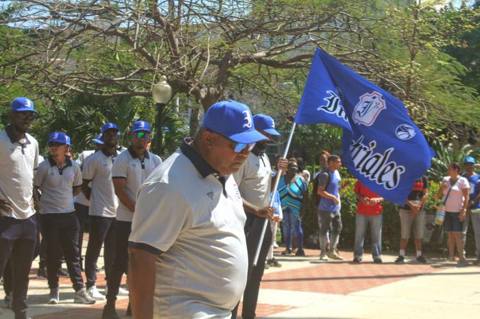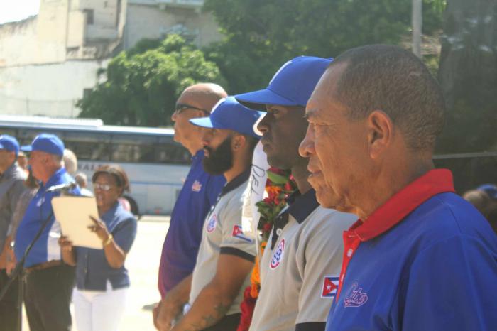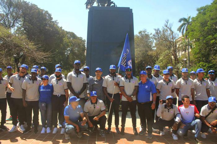 El capitán del equipo, Yasiel Santoya -escoltado por los también atletas Yosvani Peñalver y Pavel Hernández- recibió el estandarte de manos del primer secretario del Comité Provincial del Partido, Liván Izquierdo Alonso, y la Gobernadora de La Habana, Yanet Hernández Pérez.