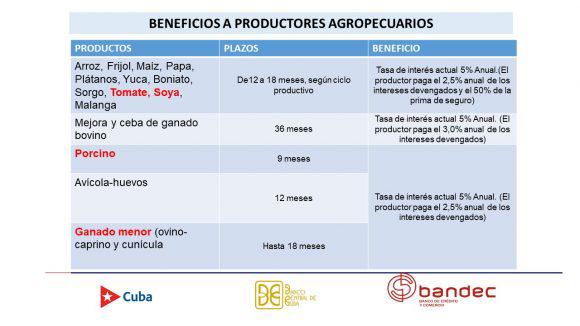 Como parte de las nuevas medidas anunciadas por el gobierno cubano para estimular la producción agropecuaria, diversas son las disposiciones relacionadas a la banca, los créditos y los seguros. Para ampliar sobre estos temas, comparecieron en la Mesa Redonda directivos del Banco Central de Cuba, el Banco de Crédito y Comercio y la OSDE Caudal.