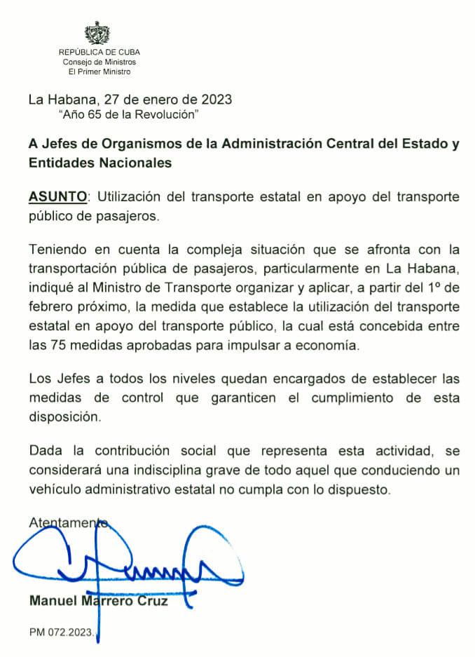 Sería bueno si lo cumplieran, al final ya apenas se sale para pasear, o vas a trabajar, o vas a un medico, o a una gestión que no puede esperar. Yo creo que los autos estatales son de todos, aunque los que lo tienen asignados se crean los dueños absolutos, salvo honrosas excepciones.como las de este artículo o como las de mi jefa que sale de la oficina con trabajadores que va dejando por el camino, y en las mañanas recoge personas en las paradas y las va acercando a su destino. Las guaguas de trabajadores circulan vacias, las de militares tampoco recogen a nadie, las de organismo Mitrans son intocables, el 90% de los carros estatales por el estilo, todos pasan por las paradas y te miran como bichos raros, y a eso se le suma que hay paradas claves donde no hay inspectores para ejercer la mínima presión. Linea y Paseo, 31 y 8, 31 y 44, por esa parada cada mañana pasan carros vacios de FMC, MInsap, FGR, Cimex, y así un montón, que con una ayudita le resolverian el problema a 2 ó 3 personas. Es un problema de larga data y que nunca ha tenido solución