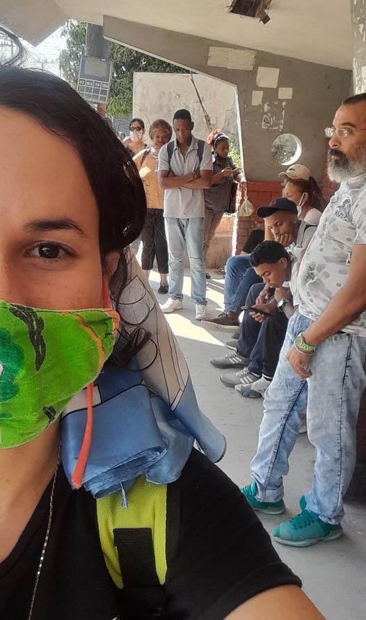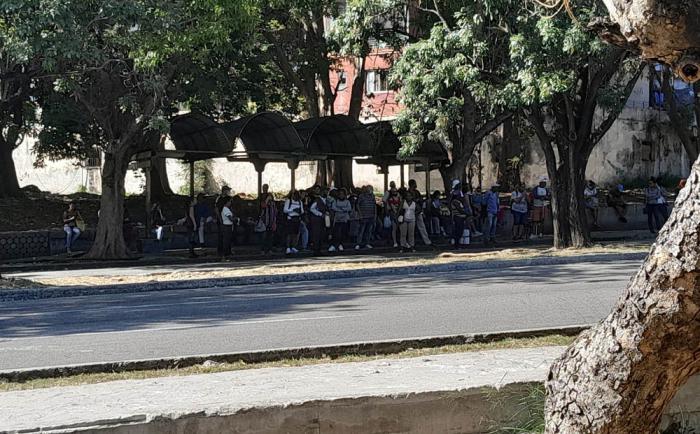 La primera y la segunda foto son de dos paradas diferentes sobre las 2:00 p.m., fuera de horario pico y repletas. La tercera imagen es de una oficina comercial de Etecsa, en Marianao. La bici que ven afuera es de una agente de telecomunicaciones que fue a depositar.