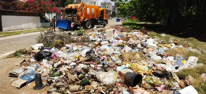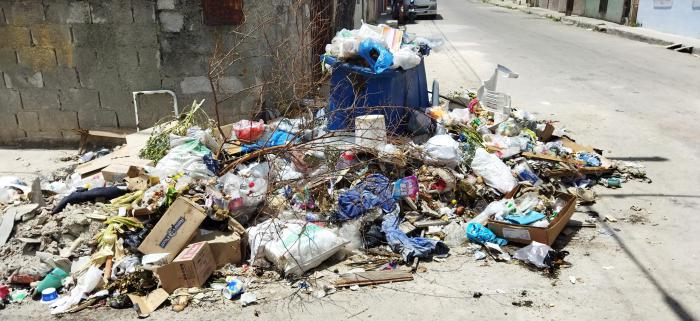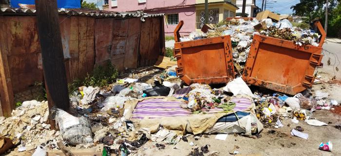Los basureros se desbordan en varias esquinas del Canal del Cerro. Es comprensible que existan limitaciones de combustible, en la disponibilidad de carros colectores, incluso hasta el personal para ejecutar esta actividad. Pero hay algo que no entiendo, porque en una de las fotos que tomé, estaba el carro colector de la basura vaciando uno de los tanques plásticos, pero ignoraron los desechos sólidos que rodean el tanque plástico.