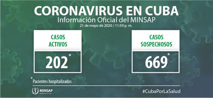 Al cierre del día de ayer, 21 de mayo, se encuentran ingresados en hospitales para vigilancia clínica epidemiológica 669 pacientes. Otras 1 mil 790 personas se vigilan en sus hogares, desde la Atención Primaria de Salud.