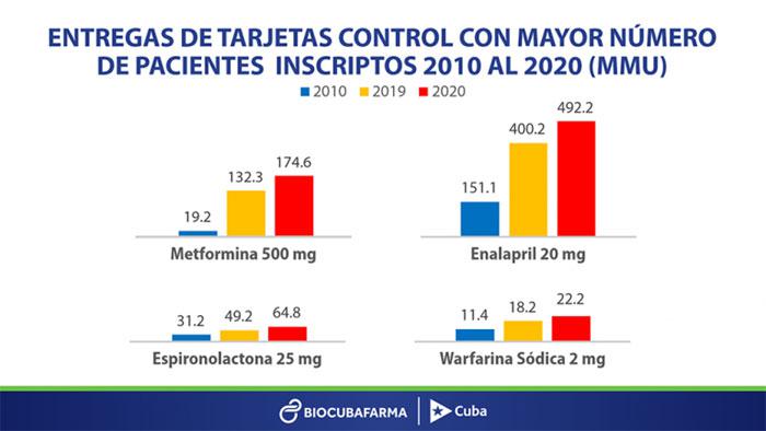 En Cuba hay 3 millones de pacientes que tienen tarjetón y existen 7,2 millones inscripciones. Un paciente consume como promedio 2,4 medicamentos.
