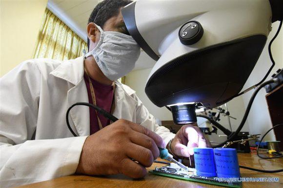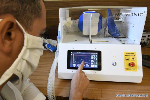 Imagen del 10 de julio de 2020 del ingeniero José Carlos Santos revisando un ventilador pulmonar en el Centro de Neurociencias, en La Habana, Cuba. Azotada por el nuevo coronavirus y acosada por el bloqueo de Estados Unidos, Cuba ha desatado el ingenio de científicos y técnicos para comenzar a fabricar sus propios ventiladores pulmonares de emergencia. Foto: Xinhua/Joaquín Hernández