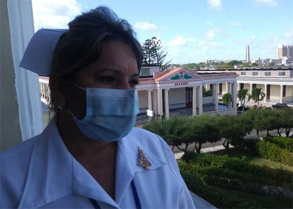 Con 23 años de experiencia como enfermera, que incluye una misión internacionalista en el hermano pueblo de Angola, la licenciada Tailyn Solar Campohermoso, expresa: “Ha sido una experiencia dura y dolorosa, porque este virus nos ha arrebatado vidas. Nuestra complacencia la tenemos en el diario batallar por cada paciente, no escatimamos esfuerzo, ni recursos. Al igual que muchas de mis colegas, tuve que buscar alternativas, por mi condición de madre, para cumplir con la tarea. Han sido jornadas intensas donde prima el amor a la vida y la pelea contra la muerte…”.