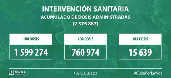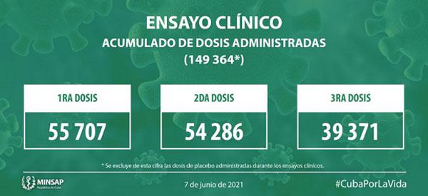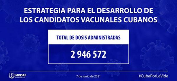 Al cierre del 7 de junio se acumulan en el país 2 946 572 dosis administradas con los candidatos vacunales cubanos.