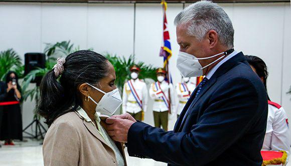 “Los que vamos a ser condecorados sentimos que somos una parte pequeñita de ese gran colectivo que convirtió los resultados existentes en parte del combate contra la covid-19. El Cigb es un colectivo héroe del trabajo”, añadió Marta Ayala Ávila, directora General del Centro de Ingeniería Genética y Biotecnología (Cigb).