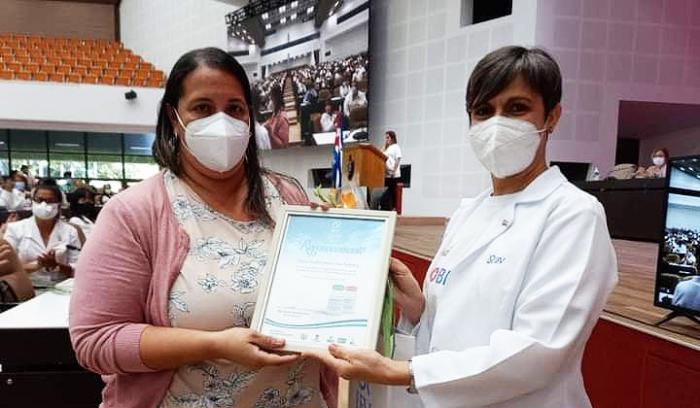 Un momento especialmente emotivo fue la distinción a las doctoras María Eugenia Toledo Romaní, investigadora principal del ensayo clínico Fase III, y Mayra García Carmenate, investigadora coordinadora de ese estudio en La Habana, quienes pusieron alma, corazón y rigor profesional en ese empeño sanador.