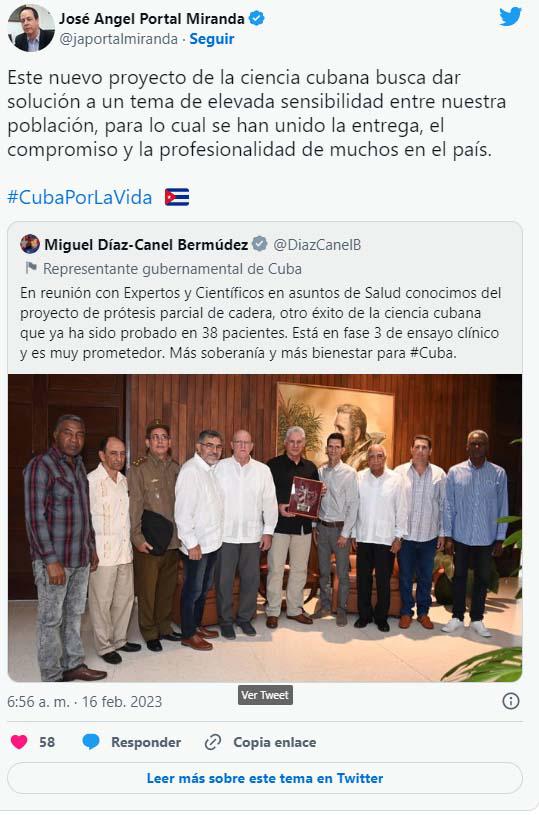A través de Twitter, el titular destacó que en este nuevo proyecto de la ciencia cubana se han unido la entrega, el compromiso y la profesionalidad de muchos en el país.