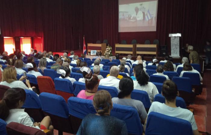 En el teatro del Hospital Clínico Quirúrgico Hermanos Ameijeiras se realizó el homenaje ante sus cenizas mortales y las medallas recibidas por su aporte a la Patria.