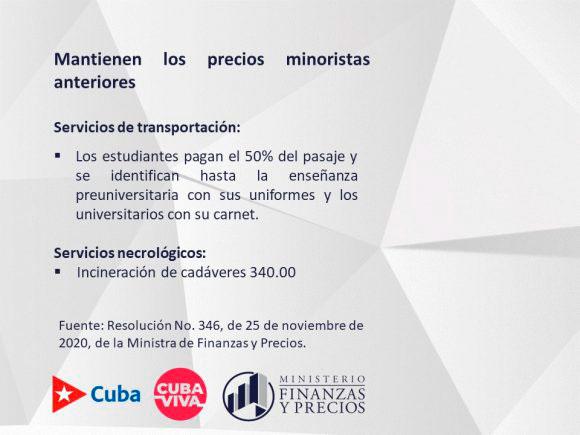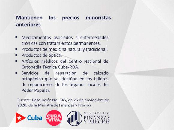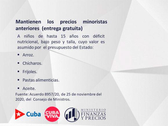 “Estamos hablando de la tarifa eléctrica, los combustibles de cocción, los que se expenden en servicentros, todos los productos de la canasta normada de alimentos, y otros agropecuarios que son acopiados, como la caña de azúcar y el tabaco”, precisó.